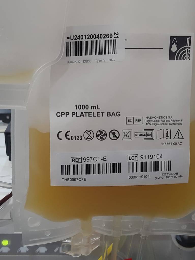 The platelets are stored in a hospital facility and given to those afflicted with cancer.